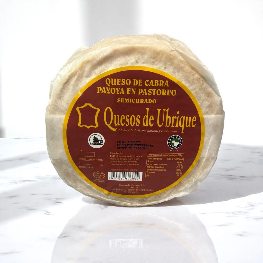 Descubre el sabor auténtico de Andalucía con el Queso de Cabra Payoya de Quesos de Ubrique, una joya gastronómica nacida en pleno corazón de la Sierra de Grazalema. Este queso artesanal se elabora exclusivamente con leche de cabra payoya, una raza autóctona que aporta un carácter inconfundible y una calidad excepcional.